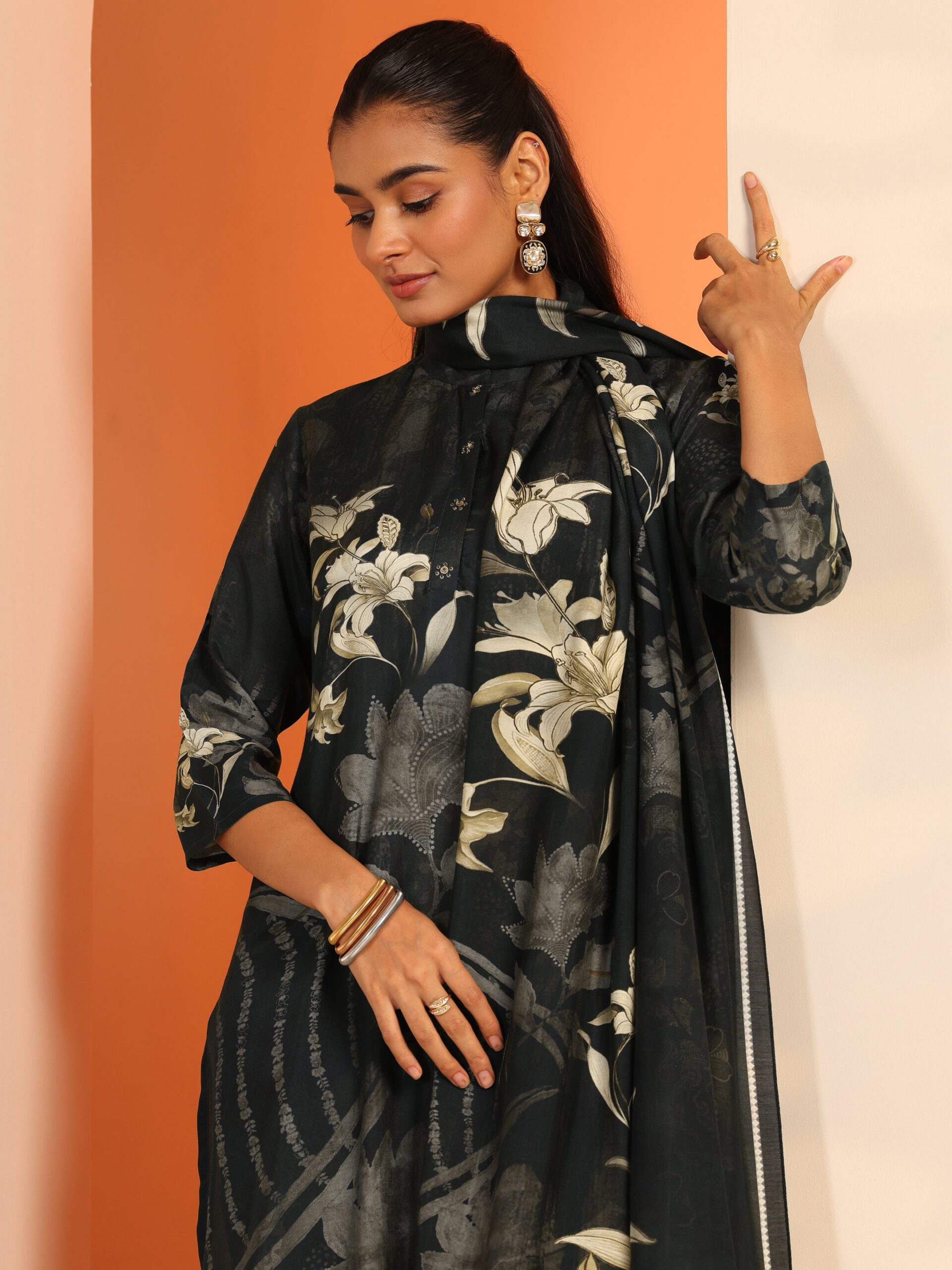 Be the first to review “Black Printed Muslin Straight Suit Set”