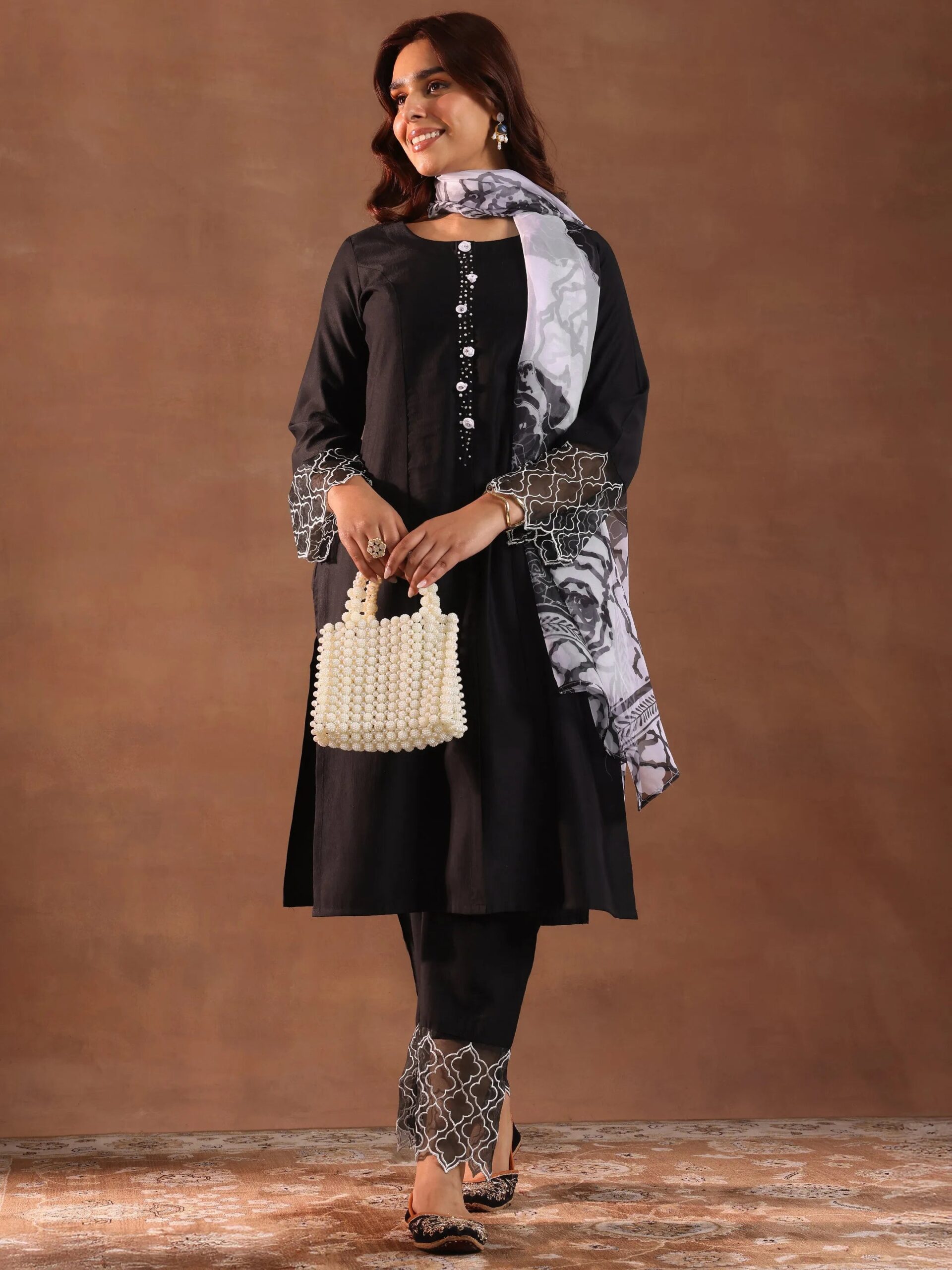 Be the first to review “Black Solid Silk Blend Straight Suit With Bottom”
