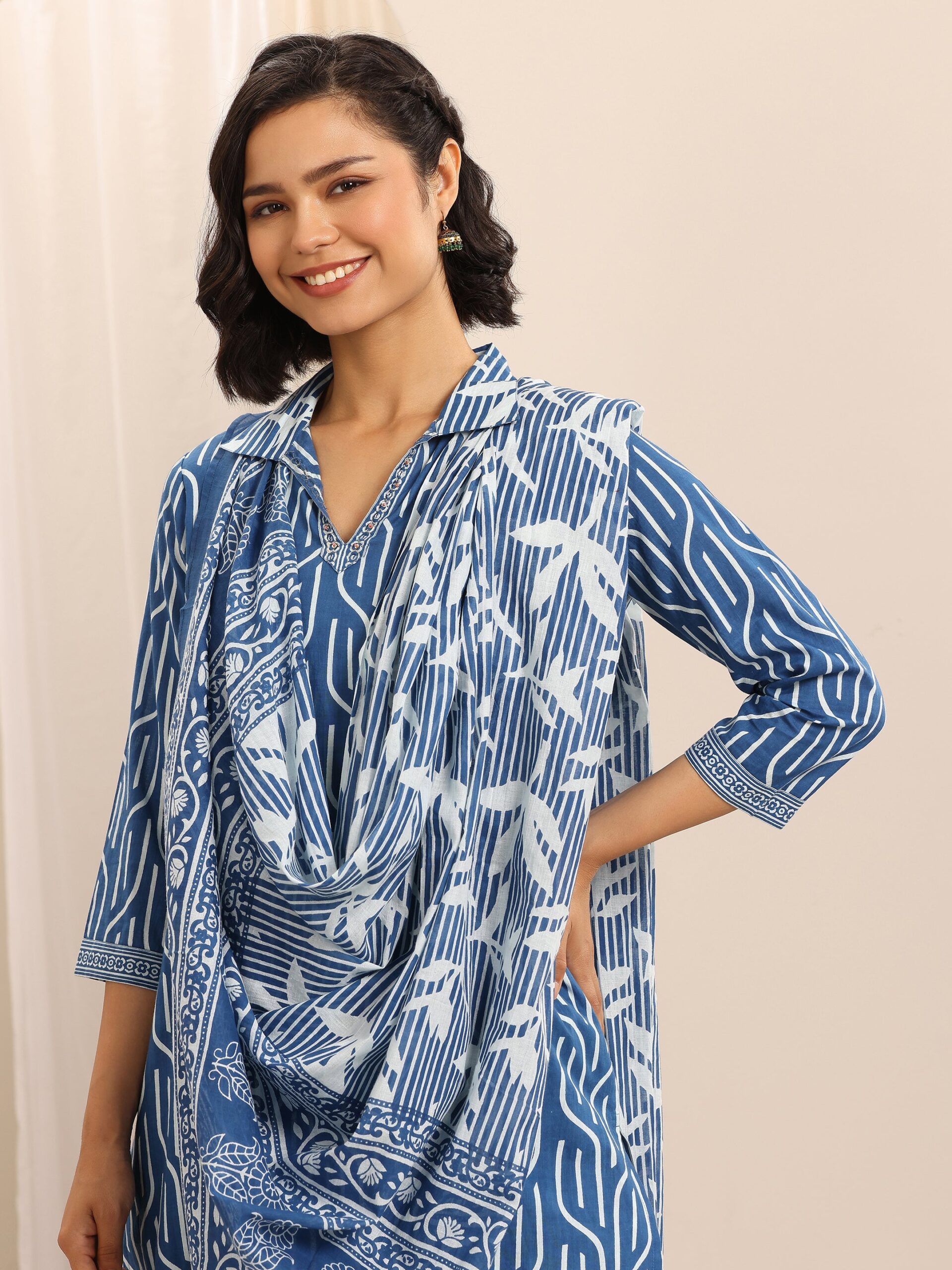 Be the first to review “Blue Printed Cotton Blend Straight Suit With Dupatta”