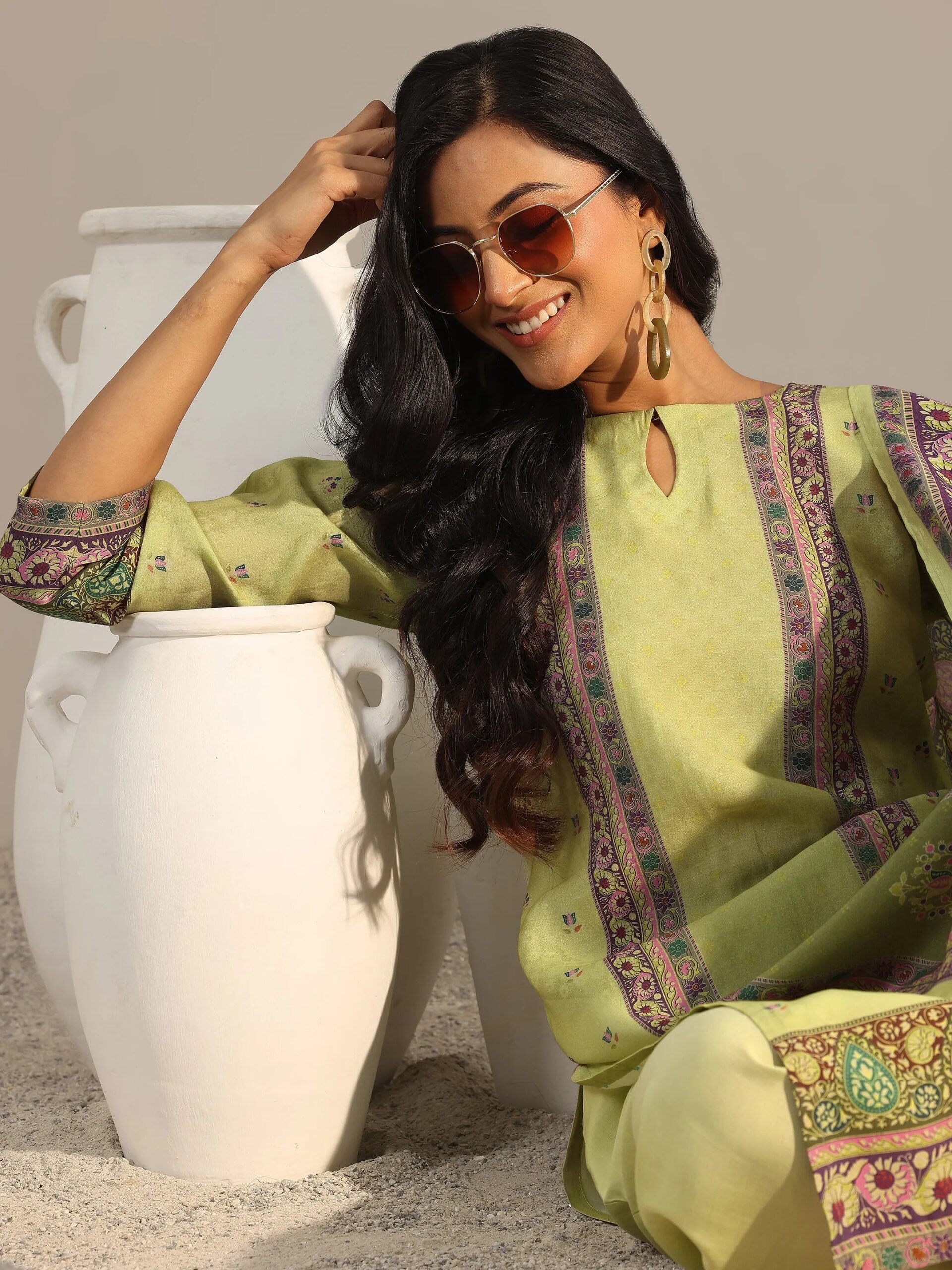Be the first to review “Green Printed Silk Blend Straight Suit”