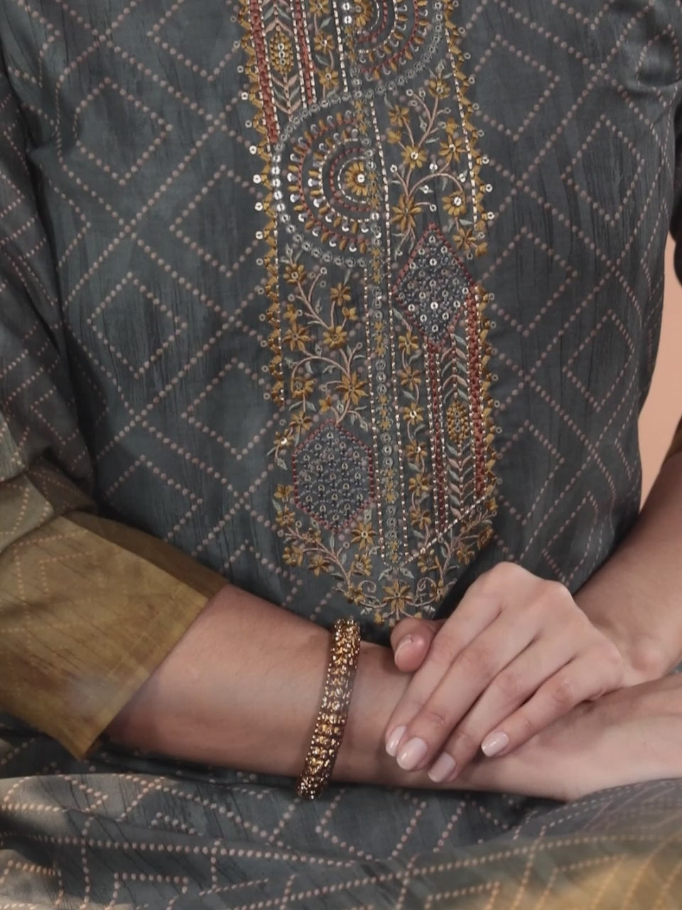 Be the first to review “Grey Yoke Design Silk Blend Straight Kurta”