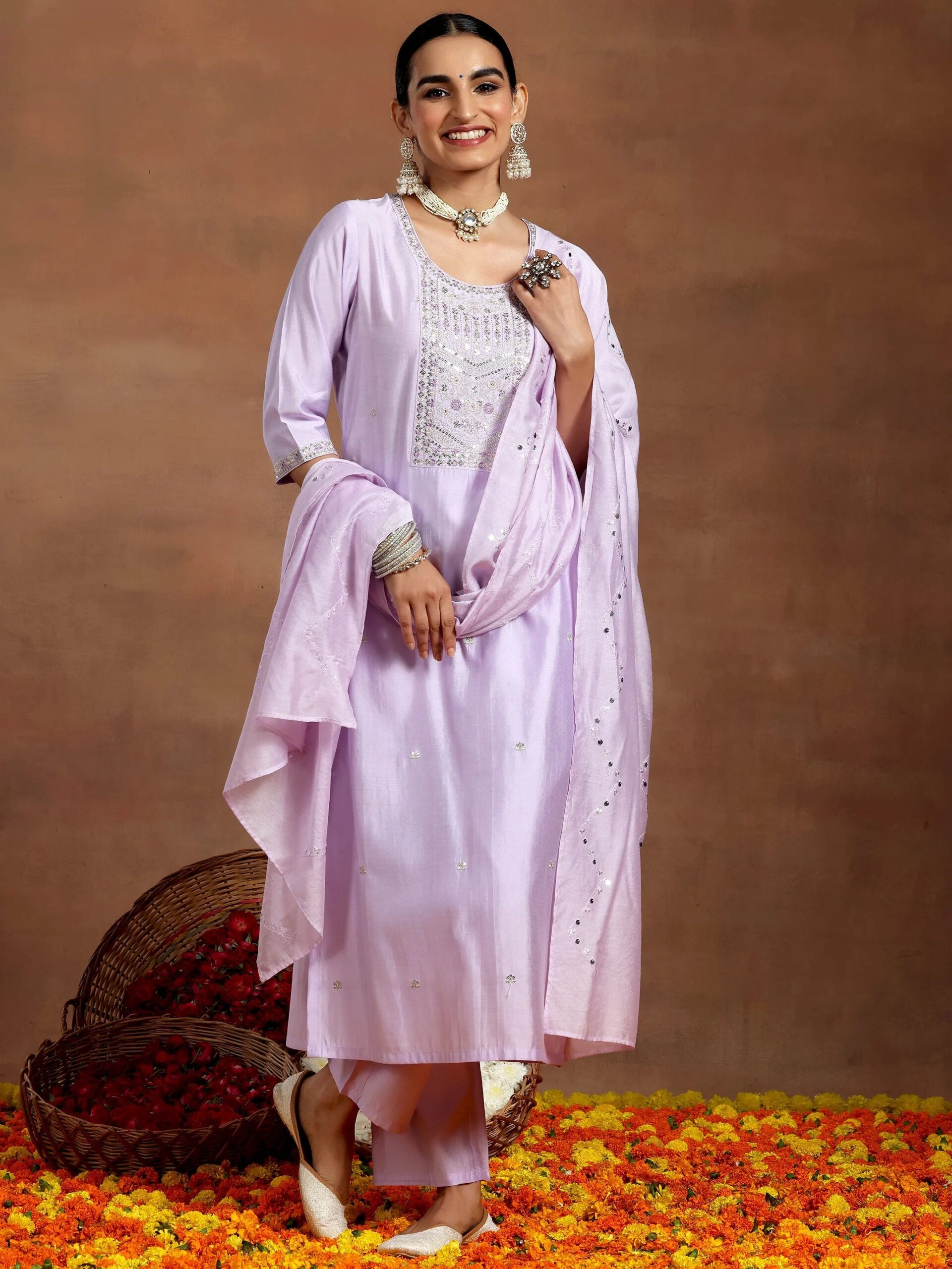 Be the first to review “Lavender Yoke Design Silk Blend Straight”