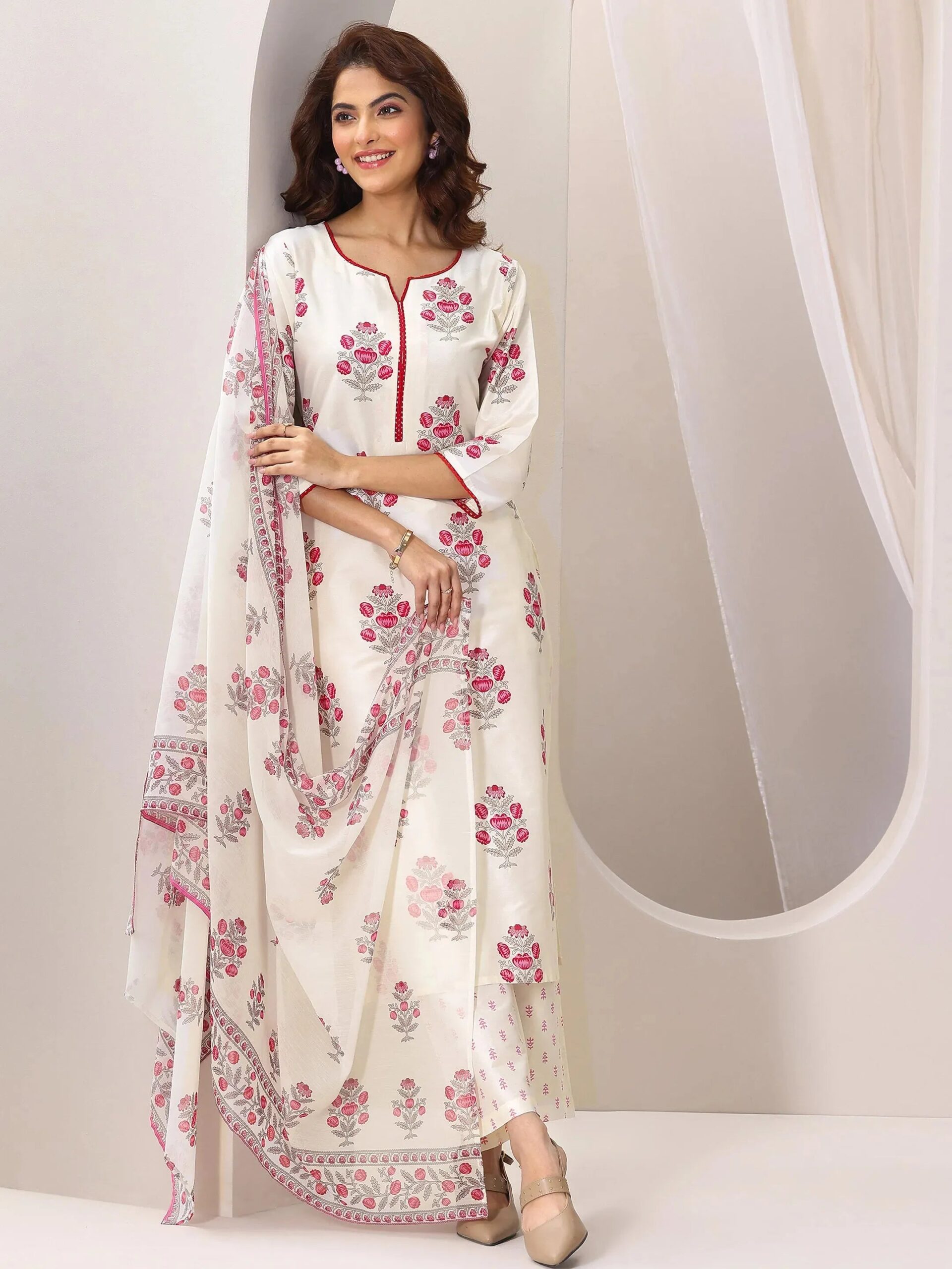 Be the first to review “Off White Printed Chanderi Silk Straight”