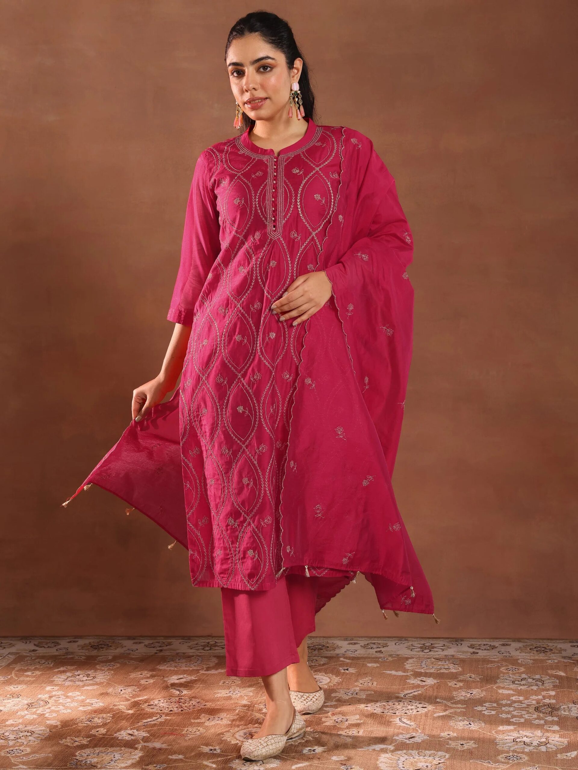 Be the first to review “Pink Embroidered Chanderi Silk Straight”