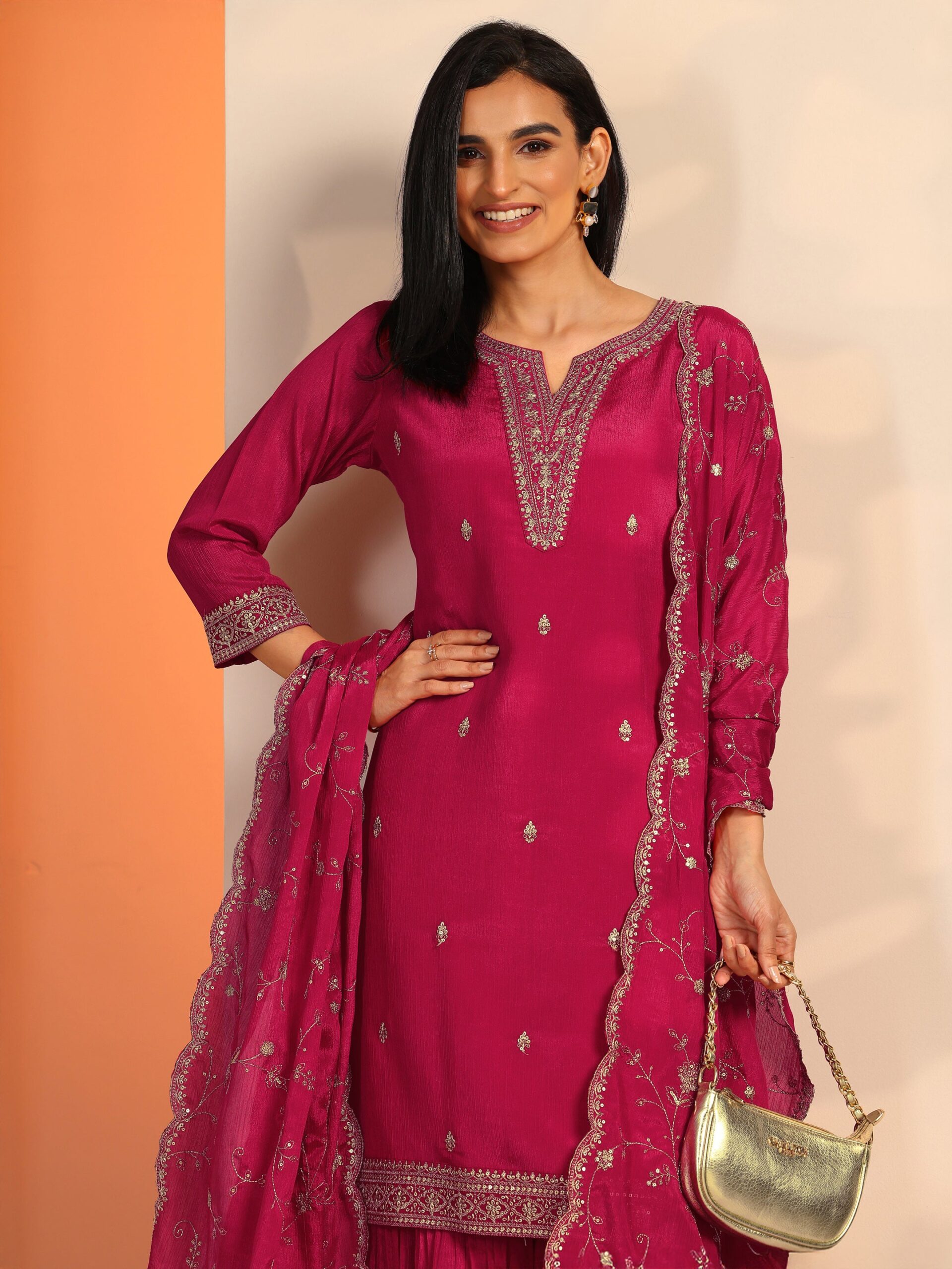 Be the first to review “Pink Embroidered Chinon Straight Suit Suite”