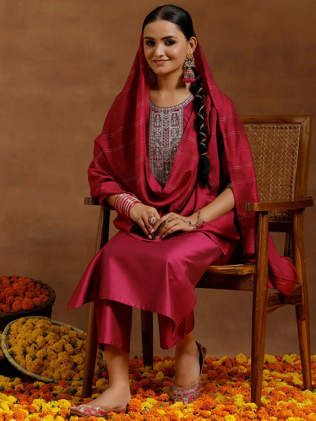 Be the first to review “Pink Yoke Design Silk Blend Straight Suite”