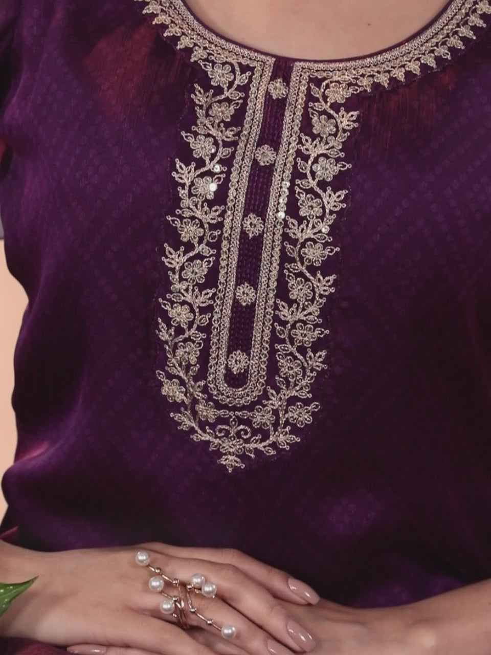 Be the first to review “Purple Printed Chiffon Straight Kurta With Bottom”