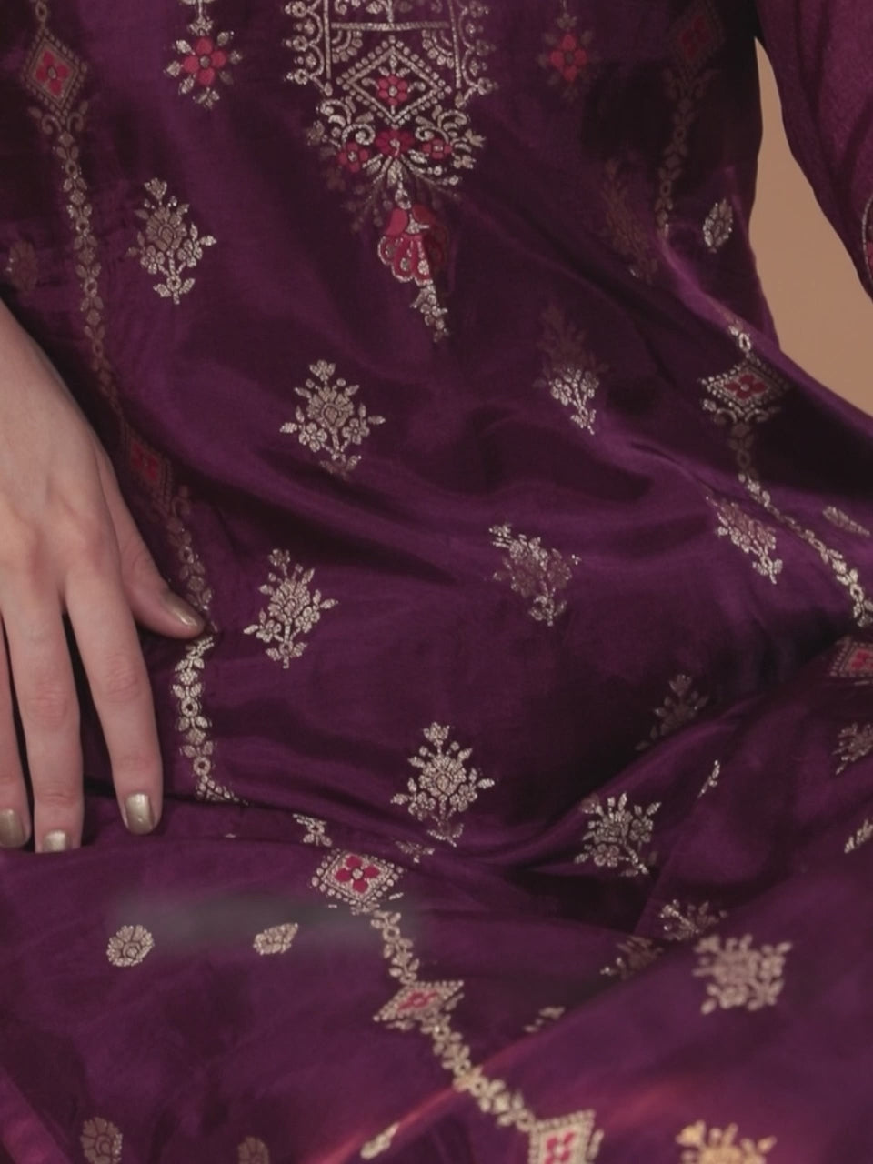 Be the first to review “Purple Self Design Silk Straight Suit With Bottom”