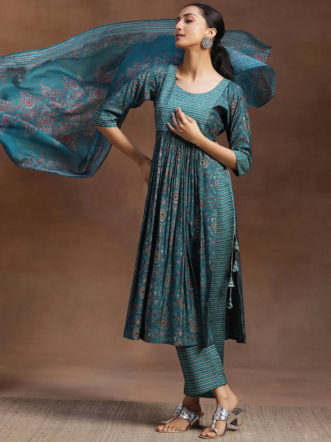 Be the first to review “Rama Green Printed Silk Blend A-Line Kurta”