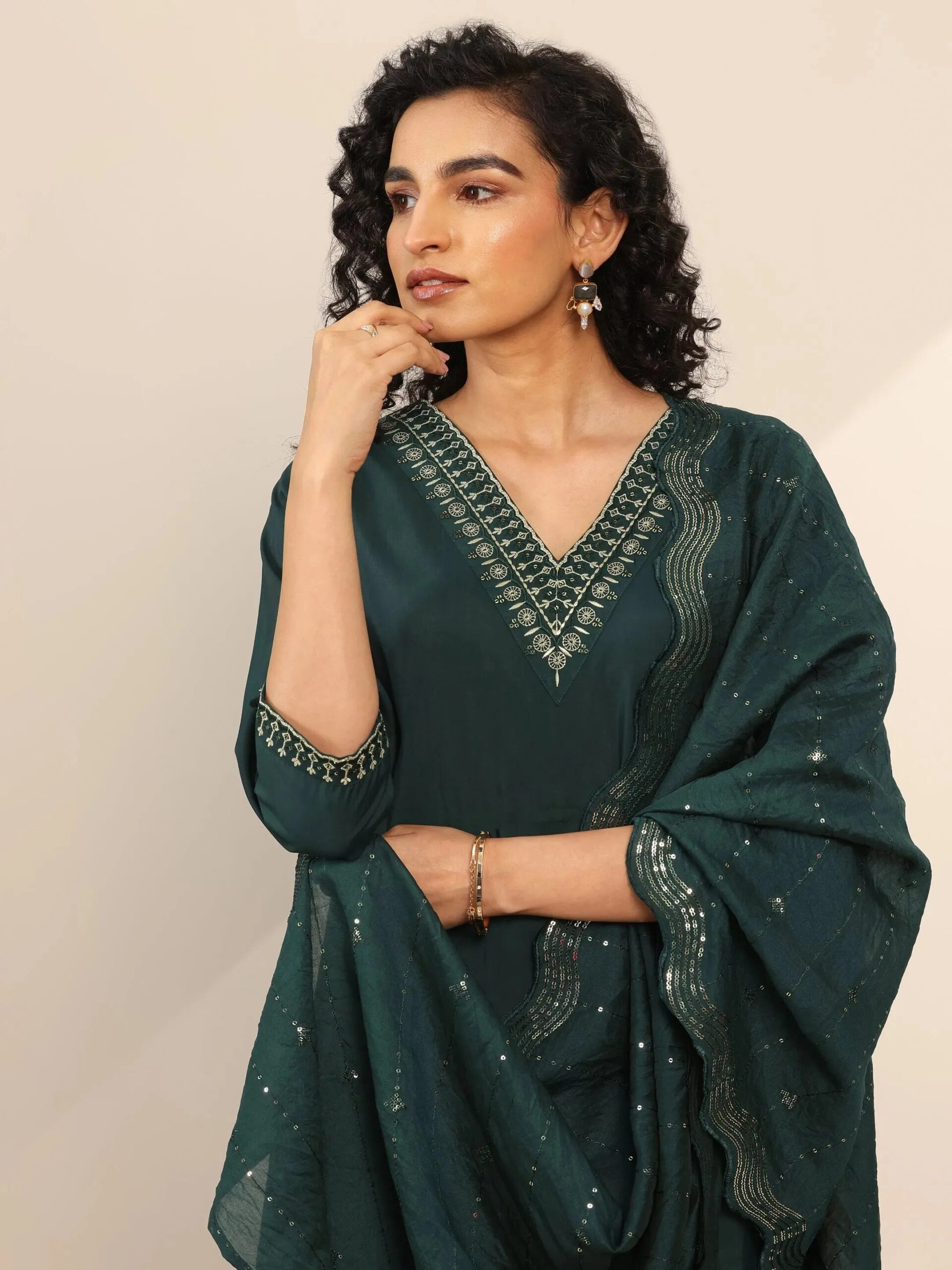 Be the first to review “Teal Yoke Design Silk Blend Straight Suite”